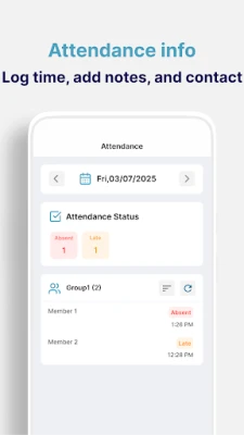 - Set attendance messages tailored to each situation - Supports multi-check and group sharing - View statistical data by period and individual using saved attendance records - Make calls, send text messages, add notes, and record attendance times - Import lists from contacts or type them manually - Export attendance data as Excel files