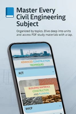Designed specifically for civil engineering students, this app provides a comprehensive platform for learning civil engineering topics. Explore the following essential sections to enhance your knowledge: