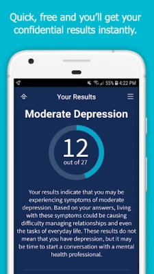 The tests in this app are one of the quickest ways to determine whether you are experiencing symptoms of a specific mental health condition. Mental health conditions, such as depression or anxiety are real, common and treatable. And recovery is possible.